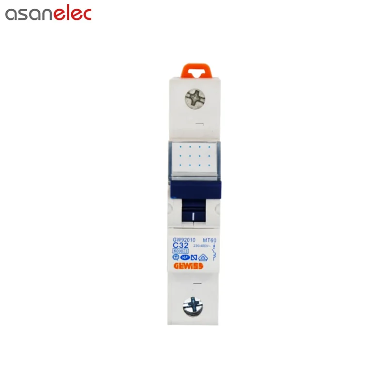 کلید مینیاتوری (MCB) وسیله ای حفاظتی است که از تجهیزات الکتریکی و صنعتی در برابر آسیب های ناشی از اضافه بار و یا اتصال کوتاه محافظت می نماید.کلید های مینیاتوری جریان متناوب GEWISS در سه تیپ روشنایی (B)، موتوری (C) و سخت موتوری (D) در انواع تک پل، تک پل با نول (1P+N)، دو پل، سه پل، سه پل با نول (3P+N) و چهار پل تولید می شوند. این محصول کلید مینیاتوری تک فاز 32 آمپر تیپ C با ظرفیت قطع 6KA می باشد.
