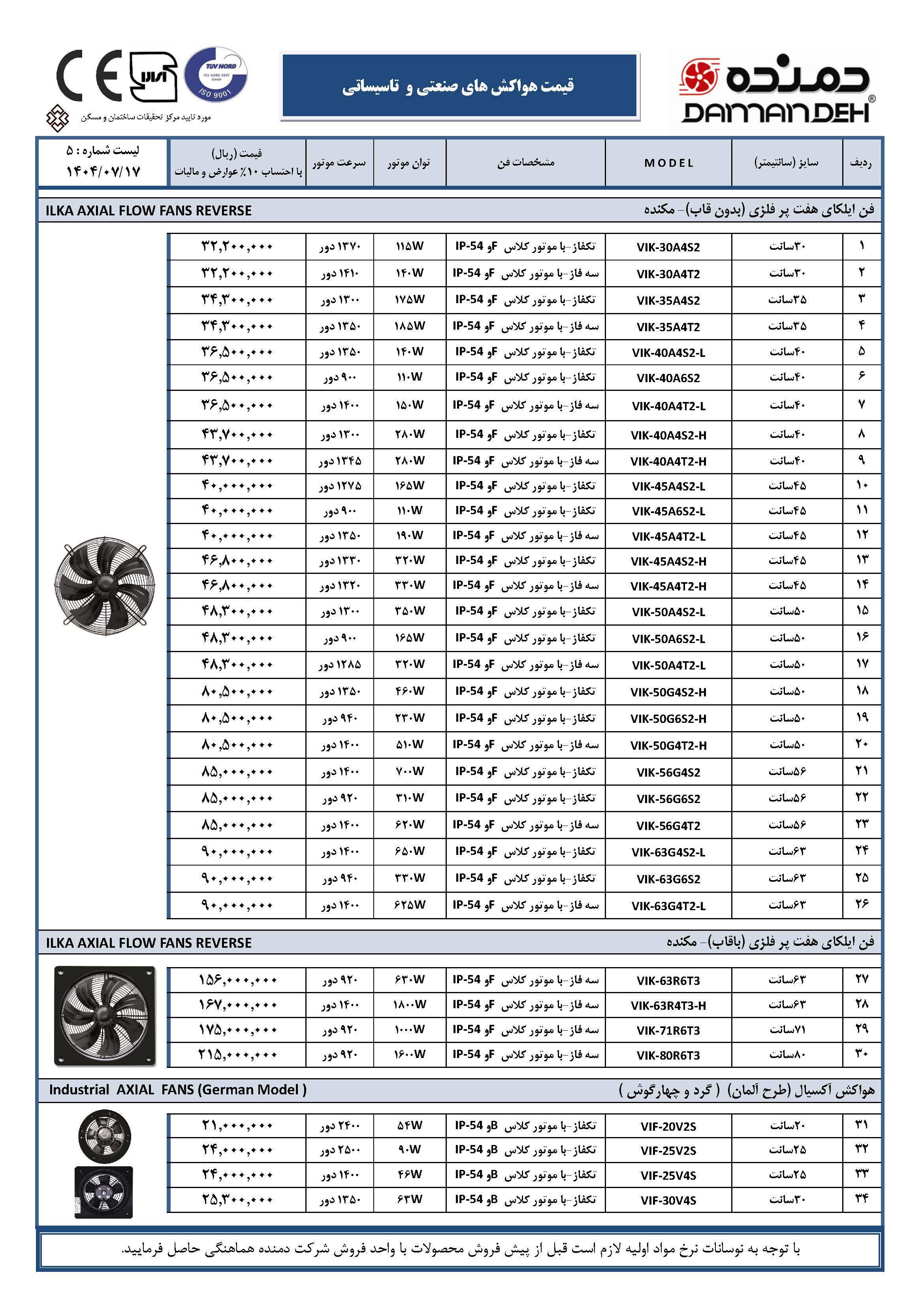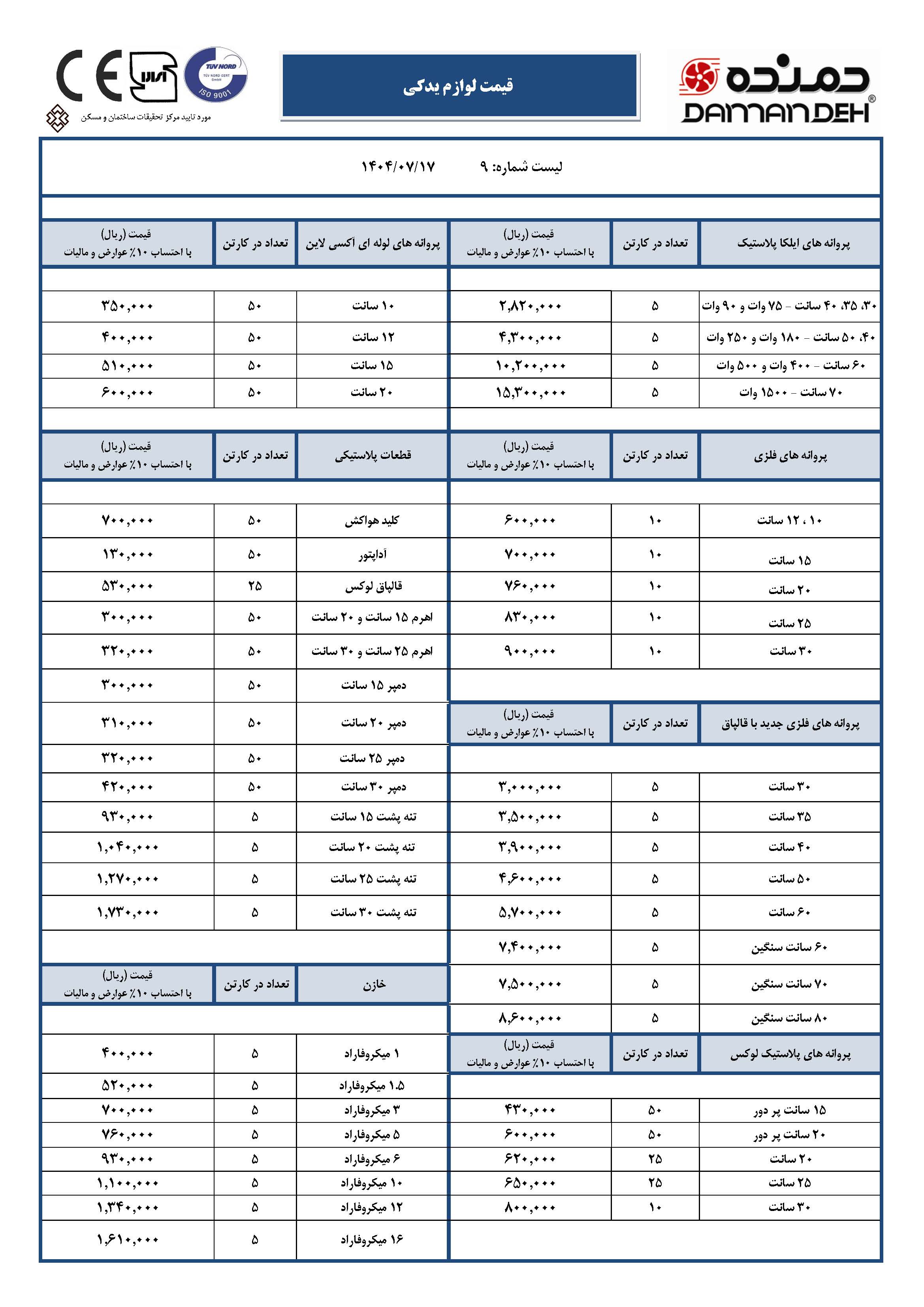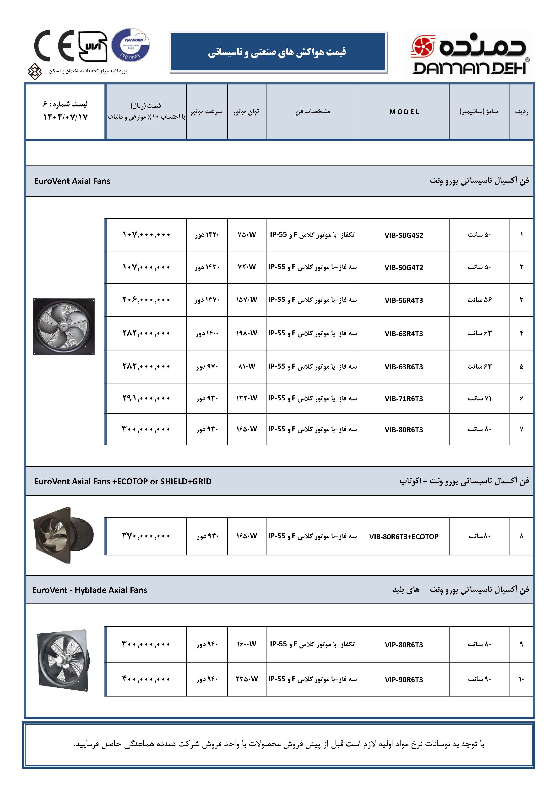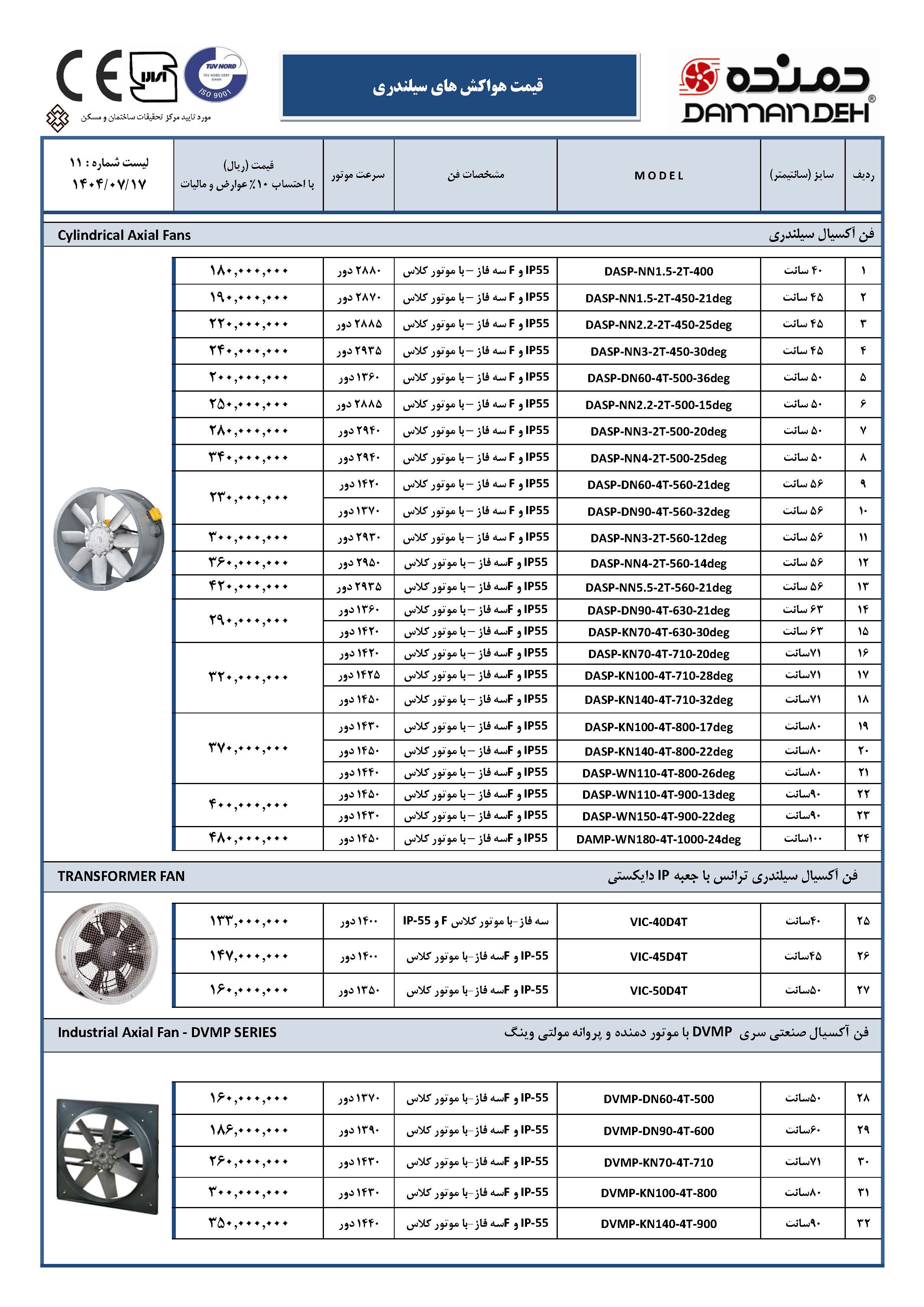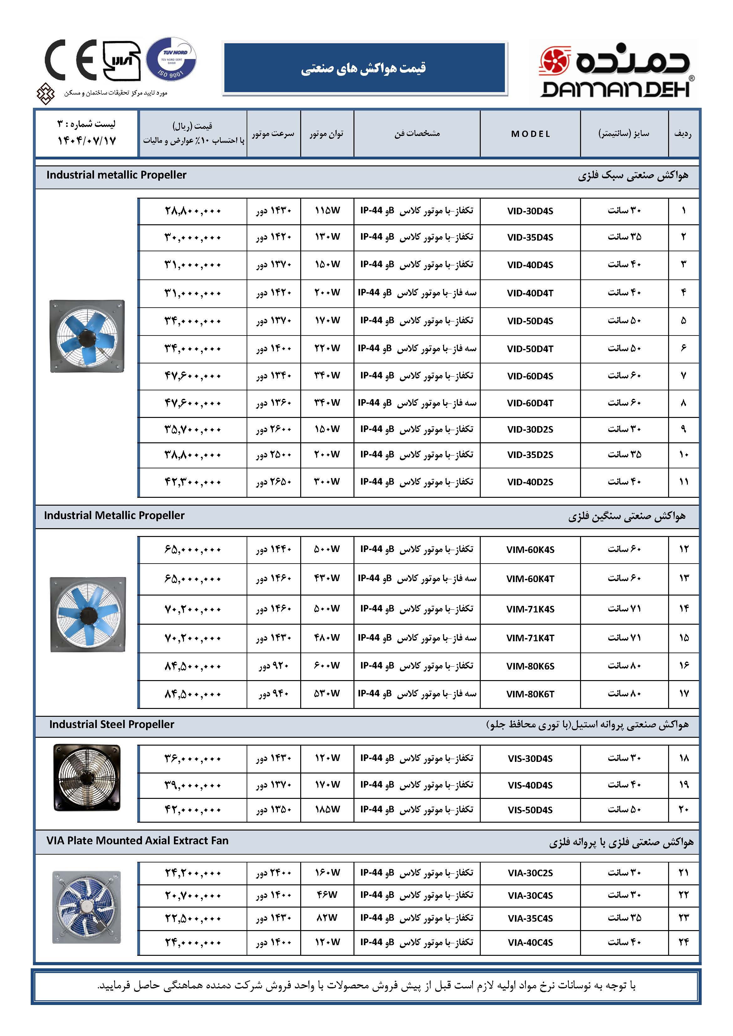 با کلیک برروی تصویر زیر می توانید فایل PDF لیست قیمت دمنده را مشاهده نمائید.