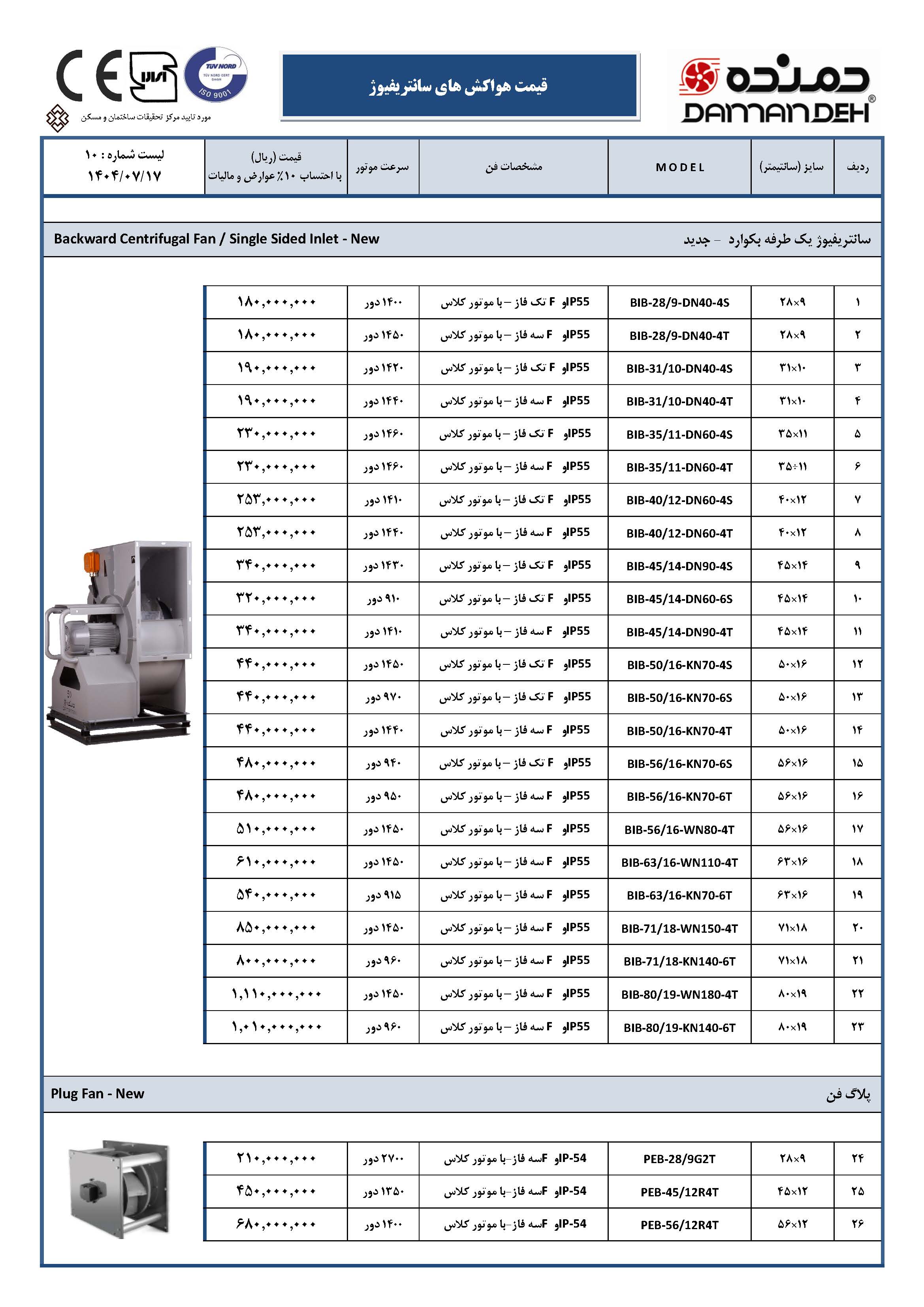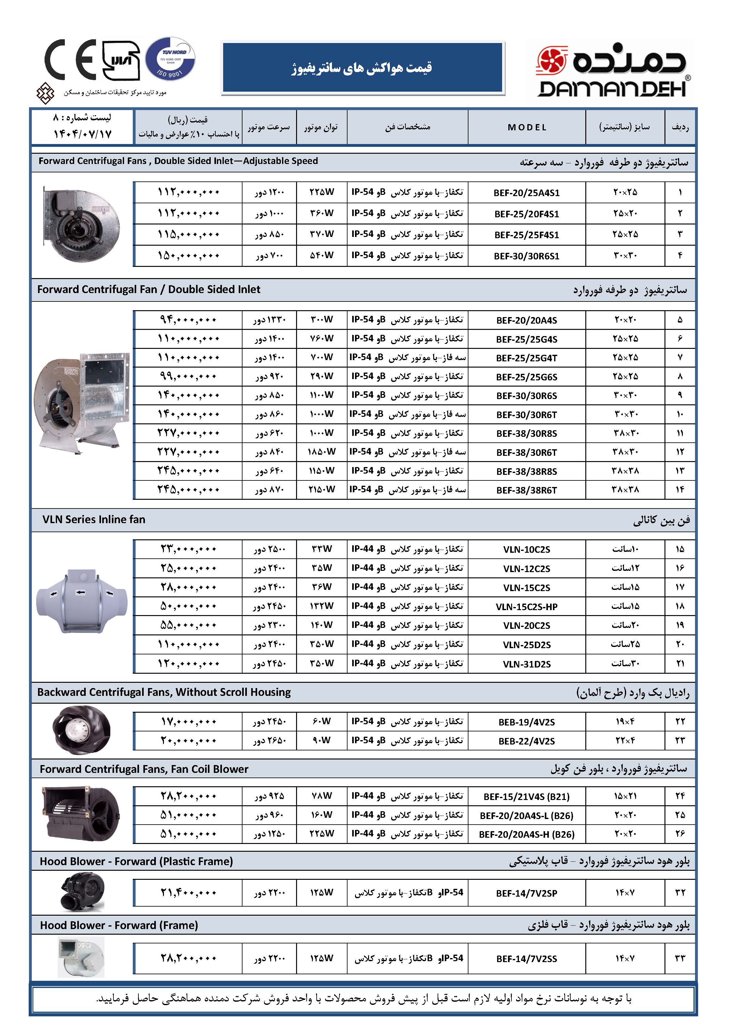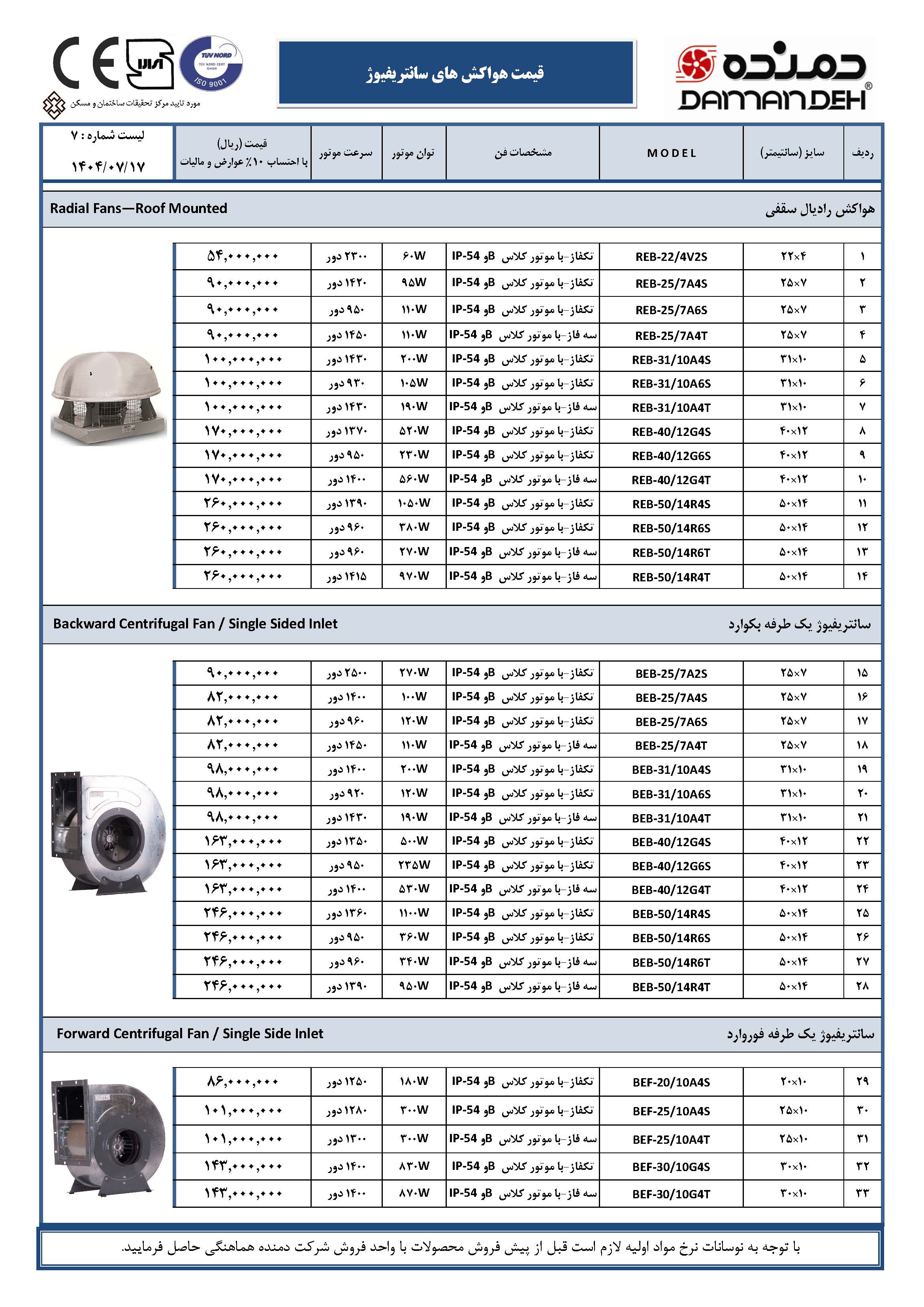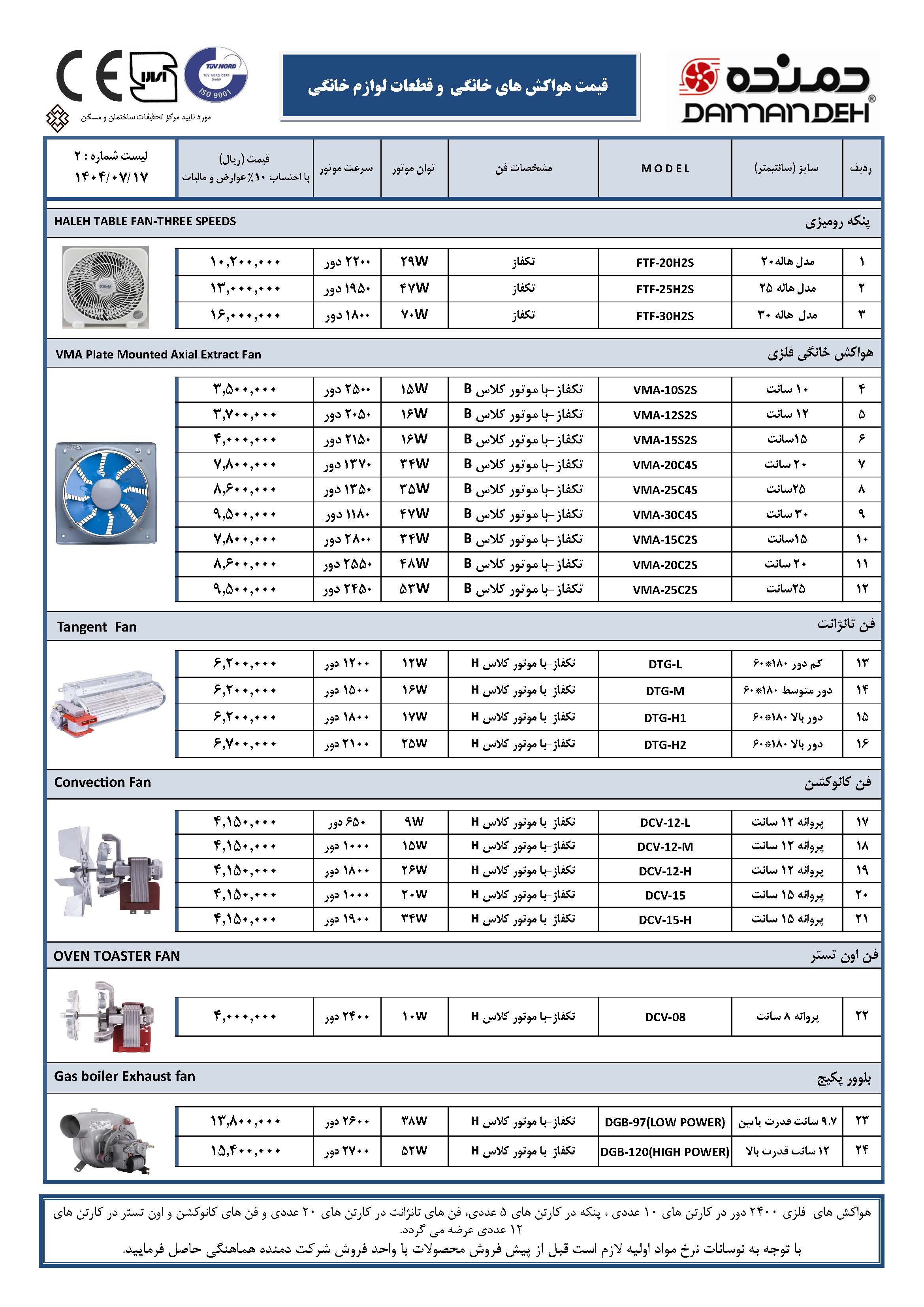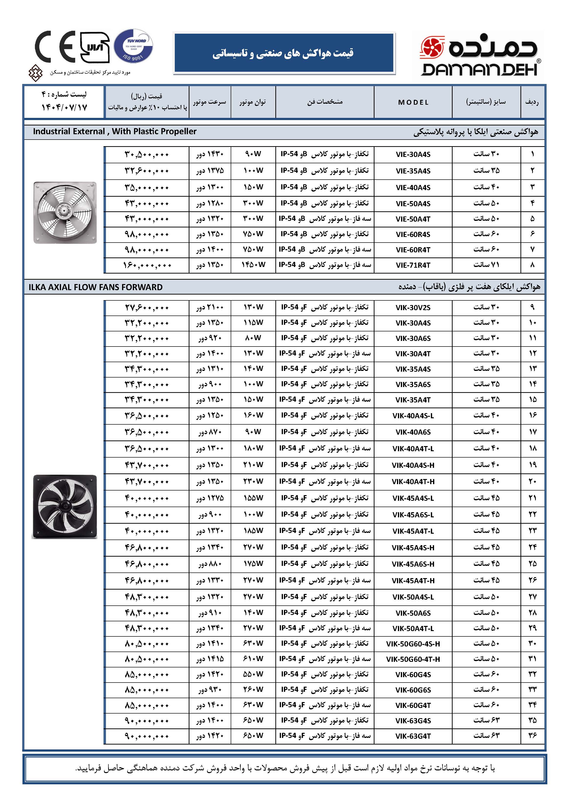 با کلیک برروی تصویر زیر می توانید فایل PDF لیست قیمت دمنده را مشاهده نمائید.