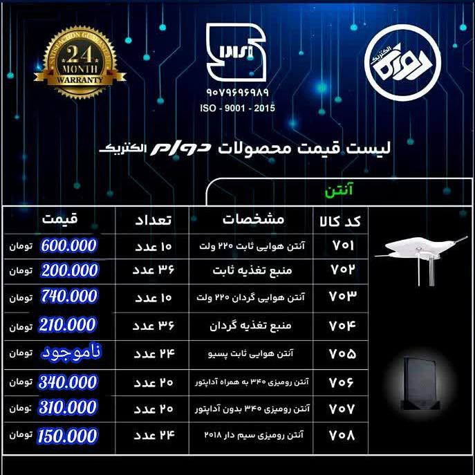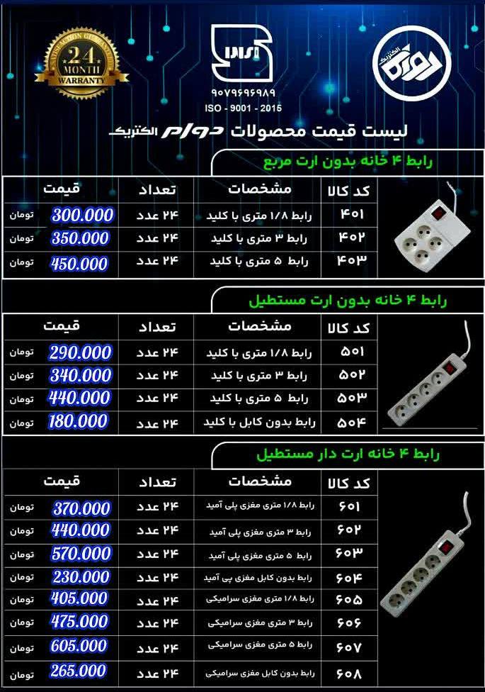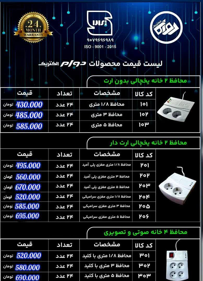 با کلیک برروی تصویر زیر می توانید فایل PDF لیست قیمت دوام الکتریک را مشاهده نمائید.