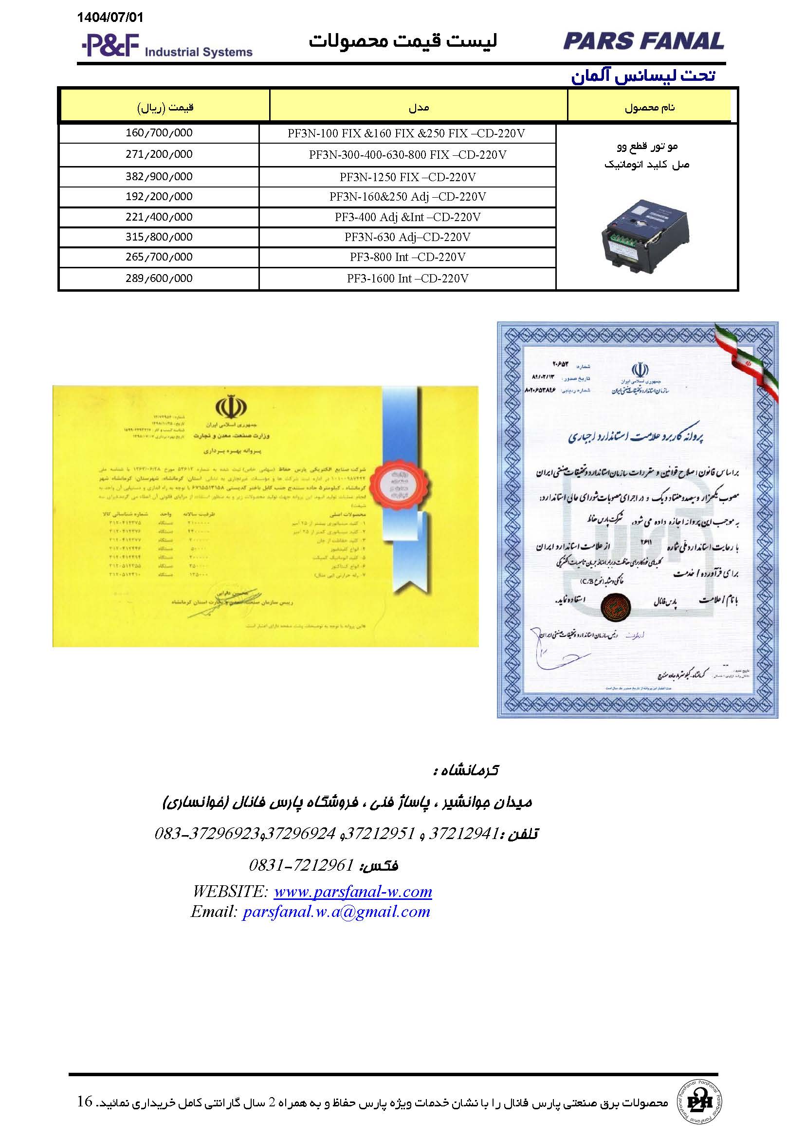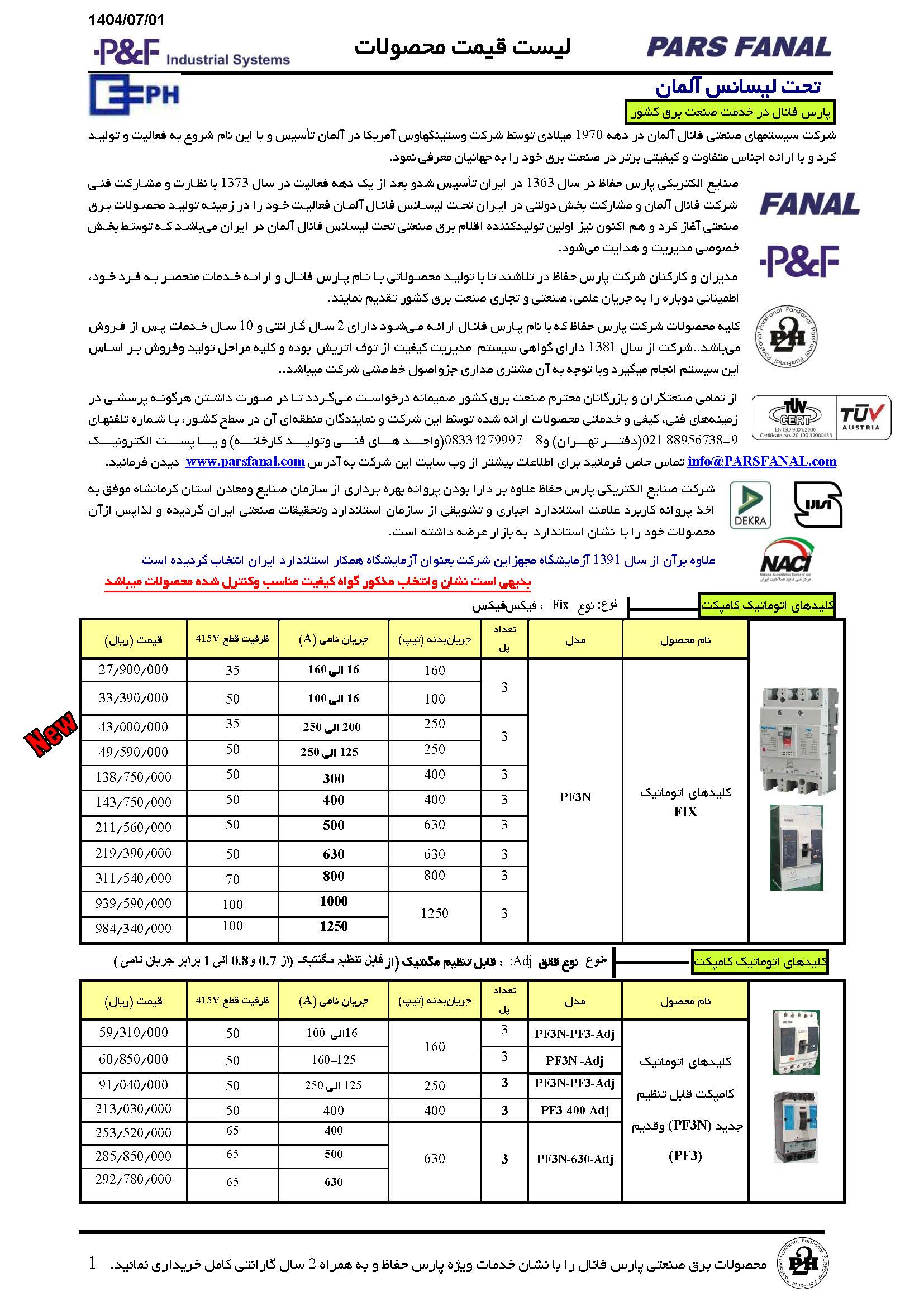 با کلیک برروی تصویر زیر می توانید فایل PDF لیست قیمت پارس فانال را مشاهده نمائید.