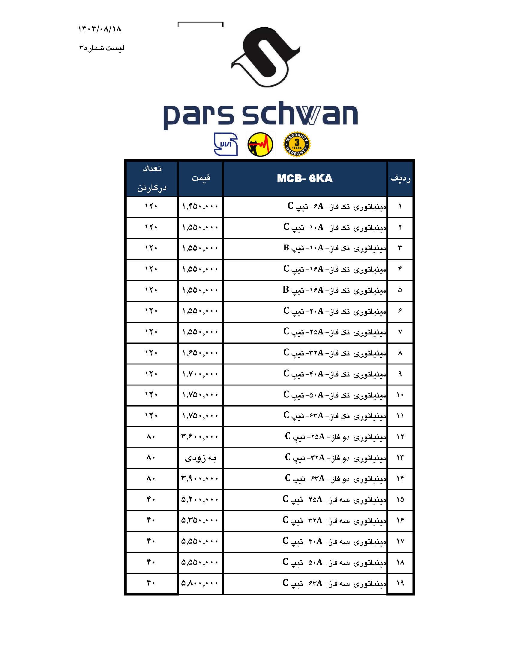 با کلیک برروی تصویر زیر می توانید فایل PDF لیست قیمت پارس شوان را مشاهده نمائید.