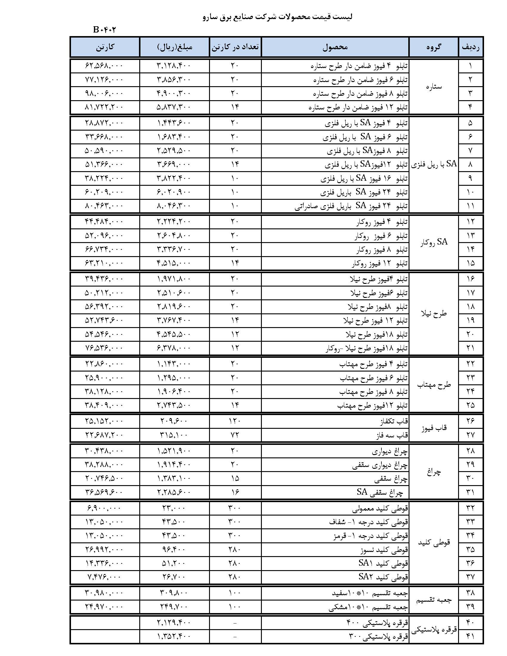 با کلیک برروی تصویر زیر می توانید فایل PDF لیست قیمت برق سارو را مشاهده نمائید.